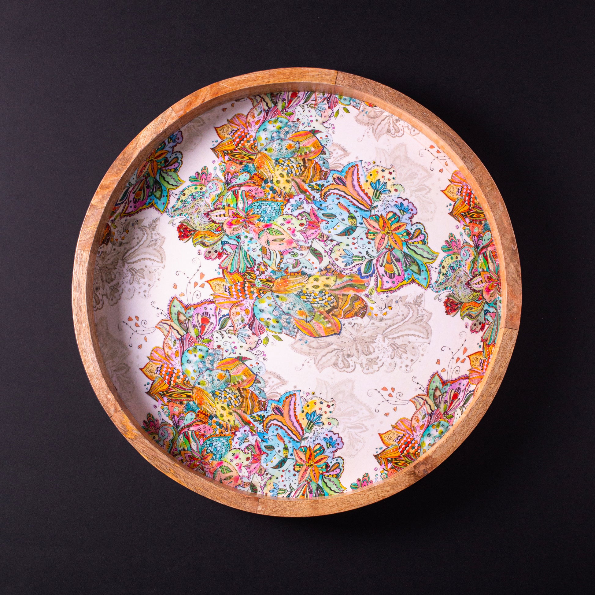Le plateau rond Multicolor XL ByRoom est une véritable pièce maîtresse pour la table et la décoration intérieure. Fabriqué en bois de manguier, il se distingue par son grand diamètre de 50 cm et par ses motifs multicolores riches et lumineux, qui apportent immédiatement caractère et personnalité à un intérieur.